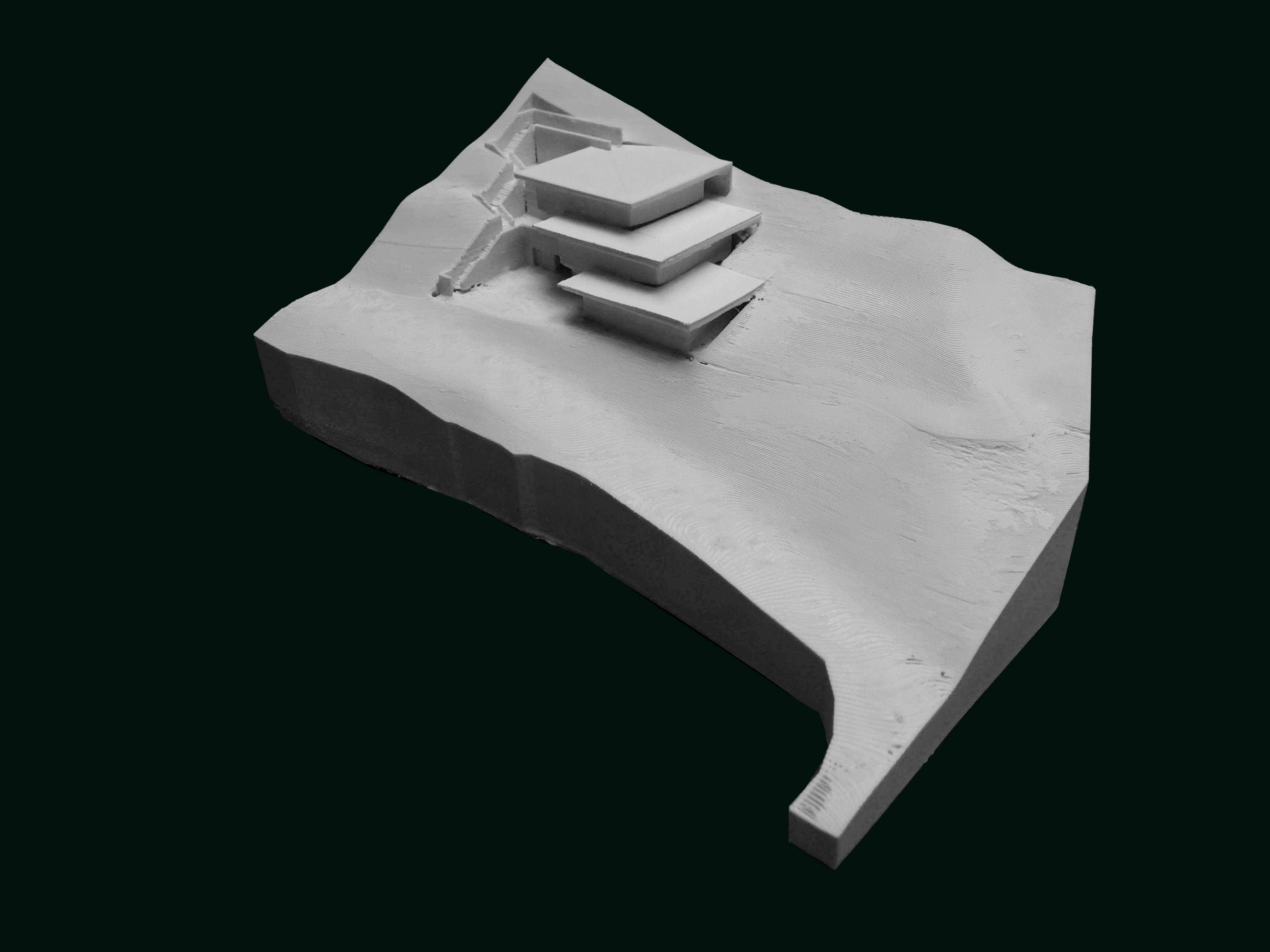 The Telluride House is a residence in the remote mountains of Pandora, Colorado. The house is designed as three stacked cubes, staggered obliquely against the famous mountain peak, Ajax Peak across the geological valley.